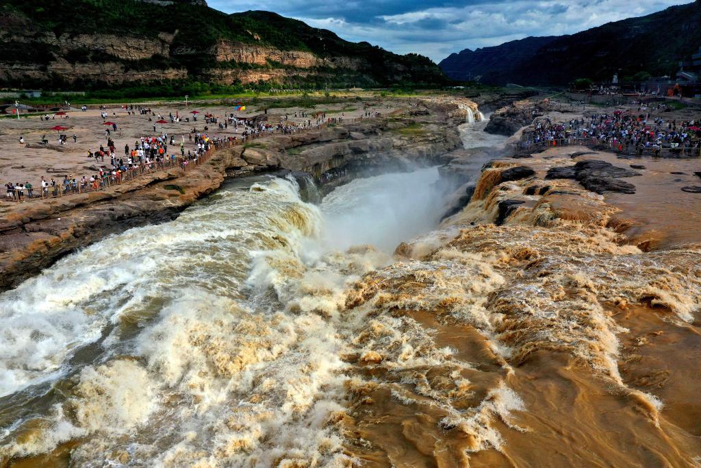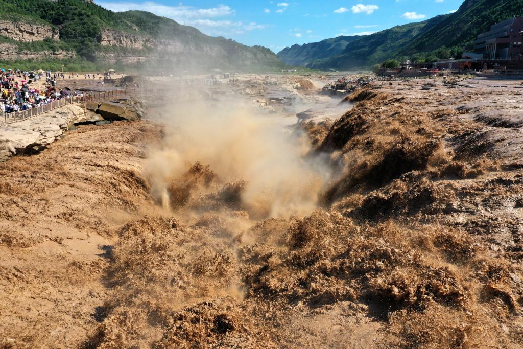 洪峰過境 黃河壺口瀑布現水岸齊平景觀